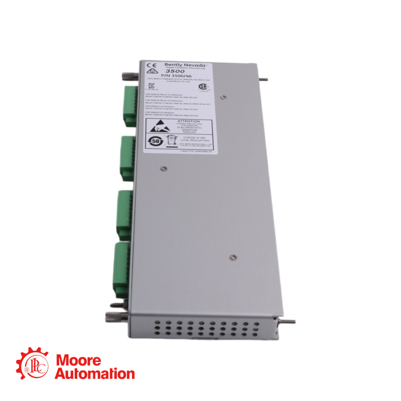 The Bently Nevada™ 3500/46M 169459-01 Hydro Monitor is a fourchannel instrument that accepts input from proximity, seismic, dynamic pressure and air gap sensors. The monitor conditions the signal to provide vibration, position and both static and dynamic pressure measurements. It then compares the conditioned signals with user-programmable alarms. Hydro Radial Vibration channels combine the shaft gap movement with the NX amplitude to provide a measurement to alarm on shear-pin failure.