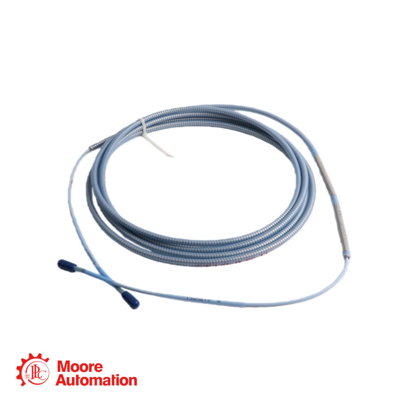 This is a 4-meter armored extension cable designed for the 3300 XL Extended Temperature Range (ETR) system. It features PFA insulation and carries multiple hazardous area approvals for use in classified environments. The cable is used to connect high-temperature probes located in hot zones to the remotely mounted Proximitor sensor.