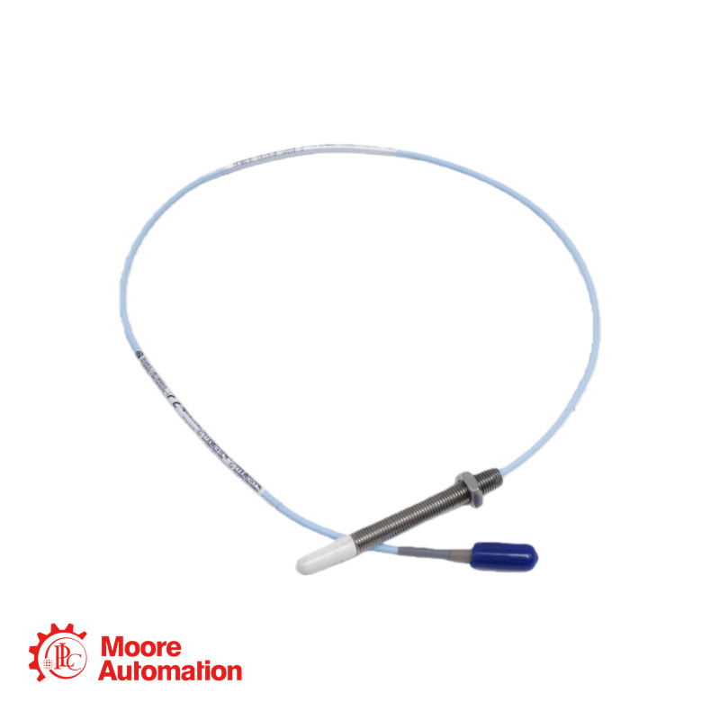 The 3300 NSv Proximity Probe (model 330903) is an unarmored M8x1 metric probe designed for precision measurements in confined spaces. With a 190mm case length, 170mm unthreaded section, and 0.5-meter FEP-insulated cable, this probe is ideal for applications requiring minimal side clearance in centrifugal compressors and other rotating machinery.