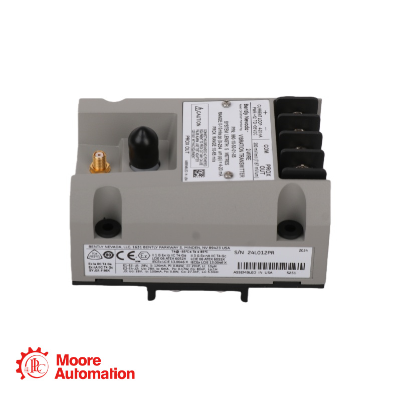 The 990-05-70-01-CN Test Adapter is isolates the PROX OUT signal from the 4-20 mA loop, protecting your machinery protection circuit and inverts the PROX OUT signal's phase by 180 degrees to match the standard polarity of Bently Nevada proximity probes, making it compatible with oscilloscopes and analyzers.