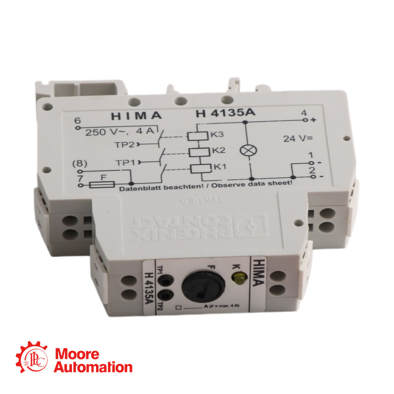 The HIMA H4135A is a safety-related relay in an electronic housing, certified for use in safety instrumented systems up to Safety Integrity Level 3 (SIL 3) according to IEC 61508, and AK 5/6 according to DIN V 19250. |
